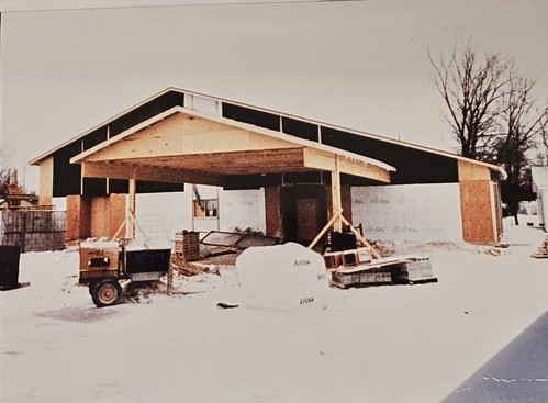 Groundbreaking ceremonies for the present church were held on March 22, 1964. While the church was being built services were held in the Auburn Public School gym. The new (current) building cost $150,000. It was built on a basement that was used as a dinning hall and for Sunday School. It also included an office for the pastor and one for the secretary located to the left and right of the altar. The first service in the new church building was December 20, 1964.